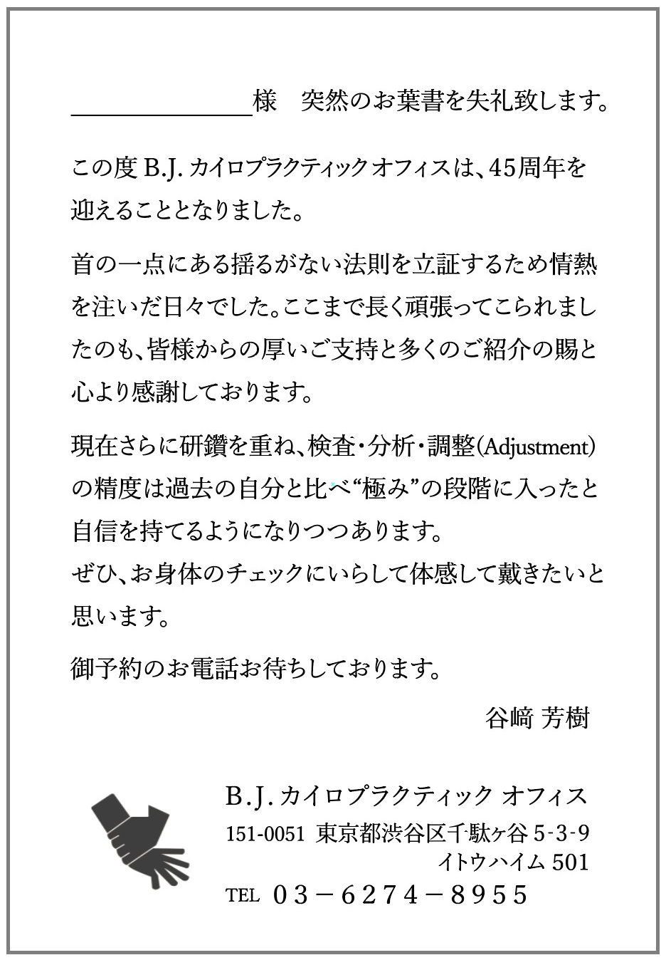これからも B.J. カイロプラクティック オフィスをよろしくお願いいたします。